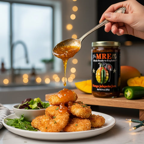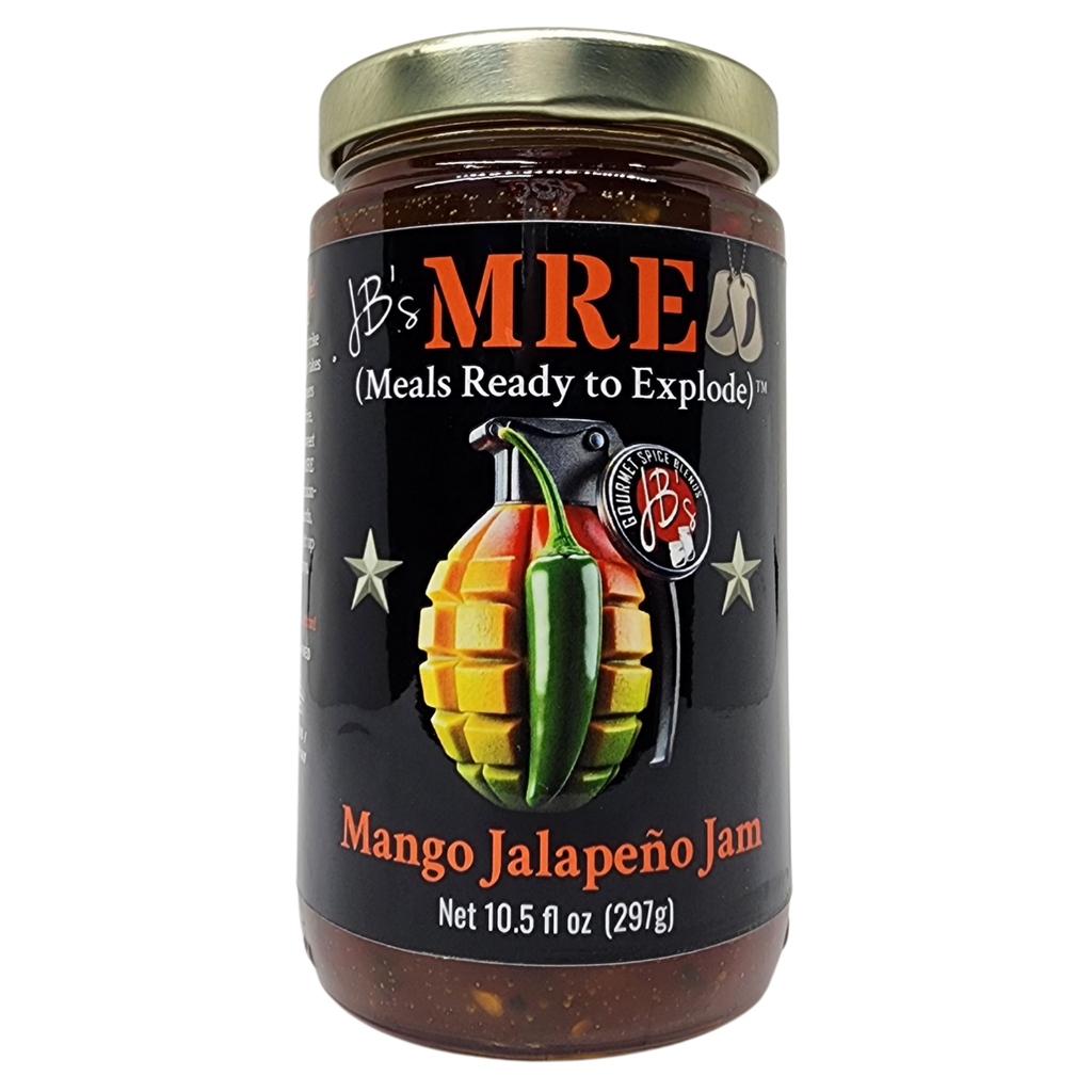 This isn't sunshine and hammocks - it's a tropical strike mission. Sweet, ripe mango takes point, then jalapeño peppers deliver the suppressive fire, unleashing a barrage of sweet heat right on target. JB's MRE Mango Jalapeño Jam is mission-ready for charcuterie boards seafood, biscuits, or straight up when the op goes sideways.